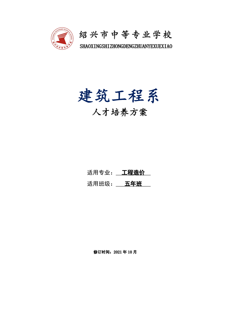 建筑工程系工程造价(五年班)专业人才培养方案