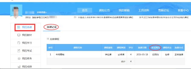 2.学生只有通过学习中心进行了相关课程的考试预约,同时学生在规定时间内参加笔试考试、网考、通过平台提交作业后,方可得到相应课程的成绩。