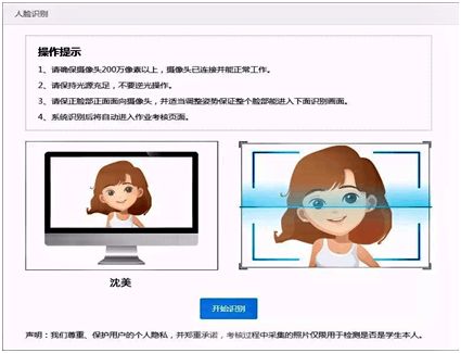 2、“人脸识别”认证必须是学生本人,如不是学生本人将无法识别,不能进行答题;