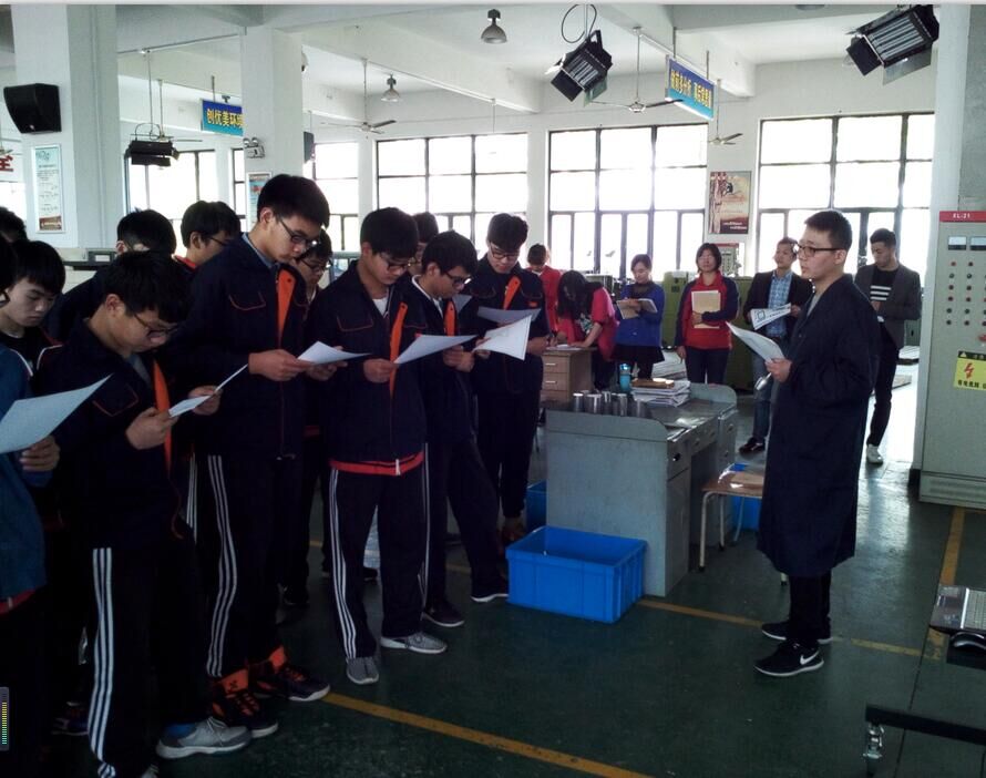 眼见着学生从一个圆柱形的铝制物件开始操作,询问了完成一个作品需要的时间,原来一个产品的生产过程并不如你所见的那些简单容易,看到学生们一个个认真操作的模样,细节处见真章,也从中可以看出,他们日常的课堂常规的教育做得很好。洪老师的党员示范课在学生完成作品后顺利结束,看到学生操作完成后整理机床,认真落实7S管理制度,这给我们基础课的老师也上了一堂实实在在的规范课。