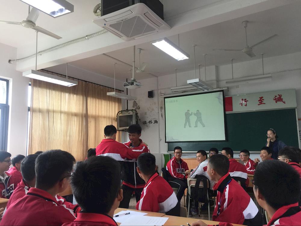 课堂上,班主任滕老师通过校园欺凌事件的真实案例,设置情景,针对校园欺凌现象的存在,以及这种行为对青少年造成的危害,引发同学们的思考。层层引导同学们身临其境,进行小组讨论,鼓励同学们各抒己见,对如何面对校园欺凌和避免校园欺凌给出自己的意见,并向同学们展示了防身技巧。最后,滕老师进行总结,分析了同学们现今的校园关系,号召大家填写倡议书,反对校园欺凌,提倡友爱互助。