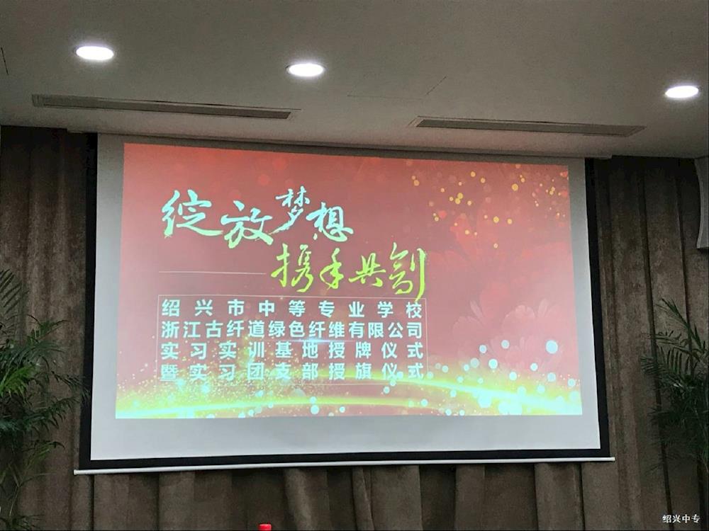 最后,主持人总结发言,授牌与授旗仪式取得圆满的成功。相信绍兴中专与古纤道携手,将会为学生的成才与企业发展带来更好的机遇。