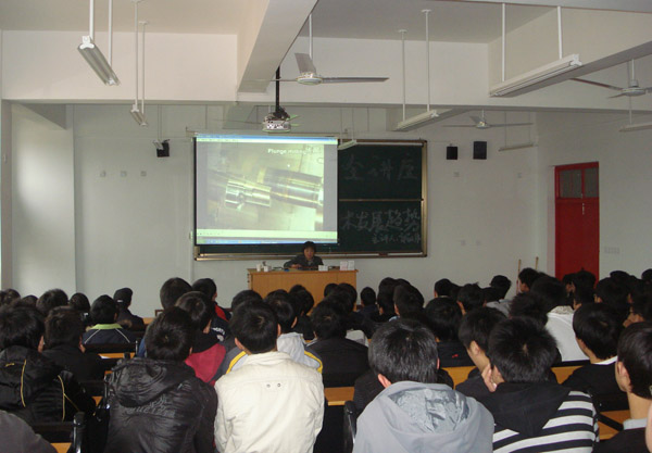 三月十二日下午,机电学区组织数控、机电专业学生开展了专业教育活动。活动的主要形式是:作讲座及会后讨论、思考,写体会文章。此次讲座由学区主管郭敬伟老师主讲,题目是“先进制造技术的发展趋势”。讲座首先回顾了世界制造业的发展简史;接着介绍了制造业的发展现状;最后谈到了先进制造技术的发展趋势。郭老师的讲座采用多媒体教学手段,讲解的内容图文并茂,引例丰富,通俗易懂,深受同学们的欢迎。