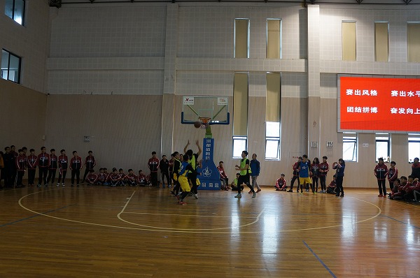 你听!篮球场上呐喊声、加油声、欢呼声一浪高过一浪,原来是学校三人制篮球赛已经进入了争夺冠亚军的决赛。裁判员哨声一响,双方队员咬紧牙关,拼尽全力,展开了你争我夺,只见一名队员身手矫健,后撤一步,轻盈起跳,后仰投篮,篮球应声入网。胜利了,同学们开怀大笑,击掌相庆!失败了,队员们相互鼓励,相约下学期再来。天气虽然寒冷,连日来阴雨绵绵,但这依然阻挡不了同学们参加阳光体育运动的脚步,整个校园被同学们的激情燃烧到了沸腾。