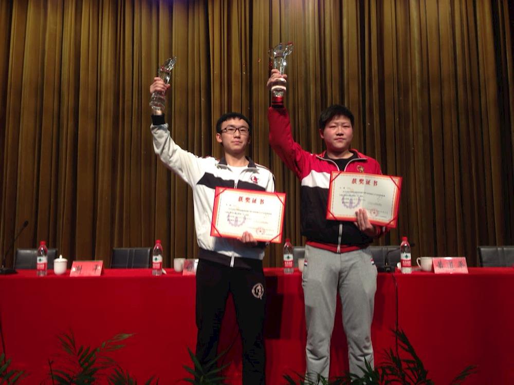 指导教师钱瞫初、徐浙明与学生同台领奖