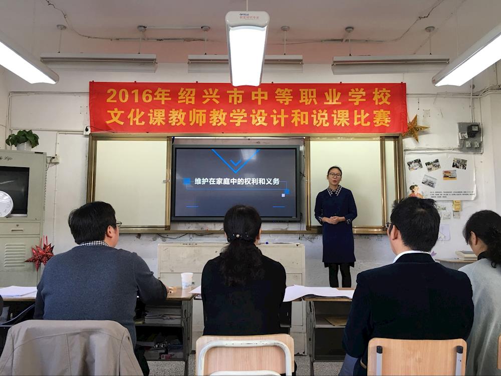 11月5日,由绍兴市职业教育教学研究室组织的“2016年绍兴市中职学校文化课教师教学设计和说课比赛”在绍兴市职教中心顺利举行。绍兴中专陈霞芳和章舒腾两位年教师凭借扎实的教育教学基本功,分获一等奖和二等奖。