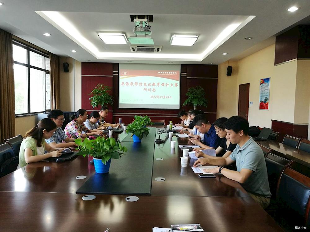为 促进英语专业发展, 提高我市中职学校英语教师参赛水平,绍兴市职业教育教学研究室 决定于2017年10月10日在绍兴中专举行 全国中等职业学校“创新杯”英语教师信息化教学设计大赛研讨会。 活动分为三个议程:绍兴市中职学校英语大组理事会研讨、国赛磨课及研讨、於芳中职英语名师工作室研讨。 市中职英语教研大组理事、全国大赛参赛选手及 於芳中职英语名师工作室成员参加了此次会议。