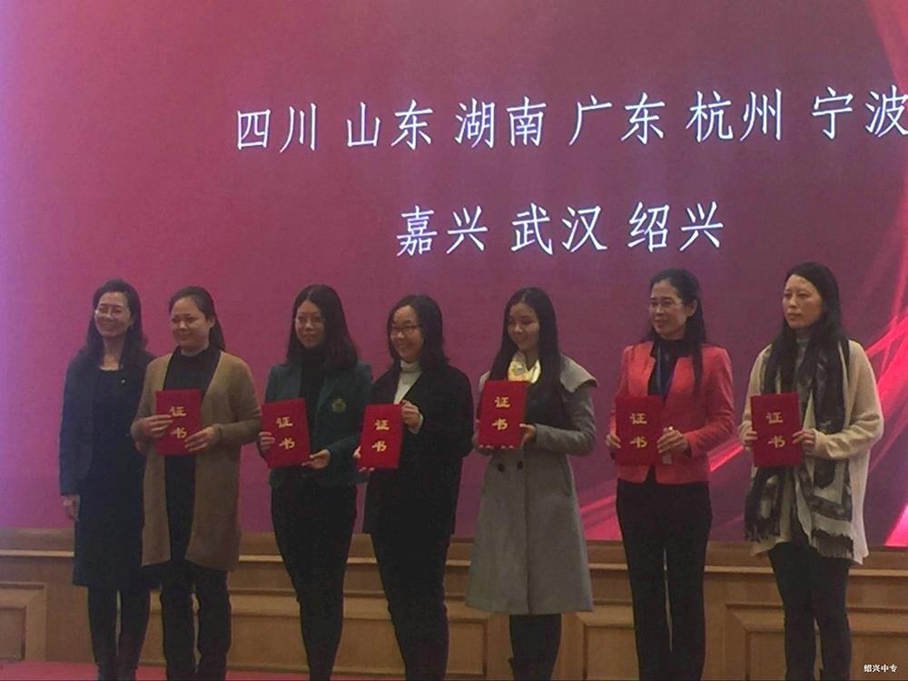 英语教研大组组长赵锦秀老师(左二)代表绍兴领取优秀组织奖