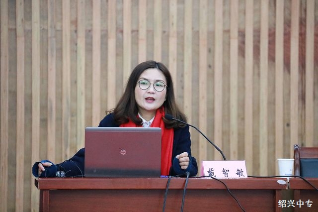 中职学生语文核心素养,是我市中职语文大组努力研修的主题。在浙江省中职语文特级教师、浙江省中职语文网络工作室导师戴智敏老师的带领下,一群志同道合的中职语文教师正围绕这一主题进行研究与尝试。在本次年会上,戴智敏老师针对2017年度开展中职语文核心素养实践研究活动做了简单的回顾,总结这一年来所取得的成绩。在会议上戴老师展示了由38位绍兴中职语文骨干教师编写的中职语文核心素养读本《读 赏 练》以及其30课时的配套微课程。独具创新的内容,别具匠心的风格,是对中职语文核心素养实践与探索的最美诠释。与此同时,戴老师介绍了浙江省中职语文网络工作室的十四位学科带头人风采,并预告了2018年语文大组及工作室的重要工作计划。她指出,接下来的一年,工作虽繁多忙碌,但是充实有意义。这是一个充满活力与新鲜血液的团队,这是一个挑战与机遇并存的团队,这是一个你追我赶,共同促进的团队。这个团队有你,有我,有他,正虚位以待,等待一群有趣有味有料的语文教师的加入。希望大家能够携手共进,以中职学生核心素养为依托,提升中职语文教学的品质。