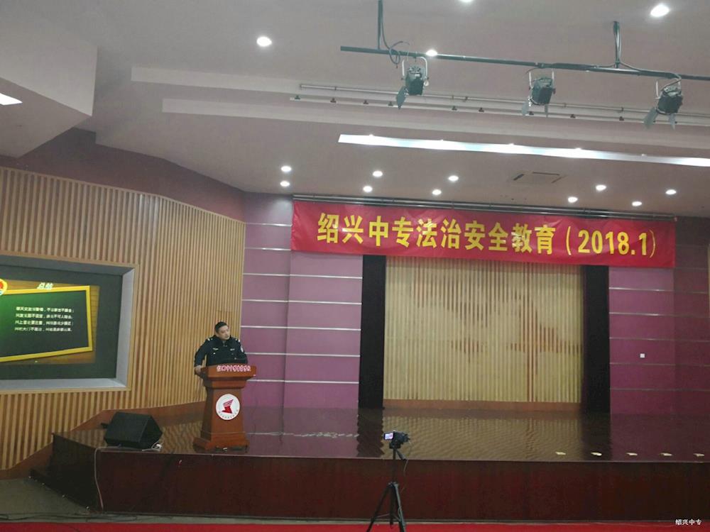 为进一步推进法制宣传教育,增强学生的法律意识,2018年1月14日晚,我校特邀请城南派出所副所长金杨和越城区检察院检察官徐倩开展了一场精彩的法制宣传教育活动。