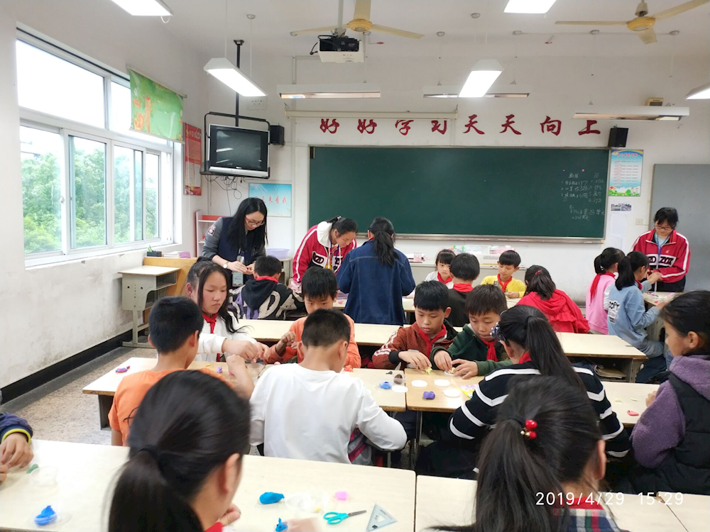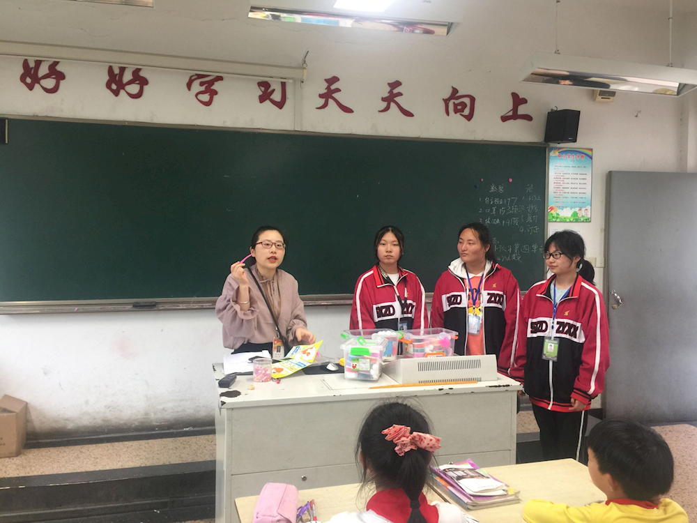 4月29日下午,18会计3+2三名志愿者在朱红老师、赵奥老师的带领下前往坡塘小学进行送教活动。