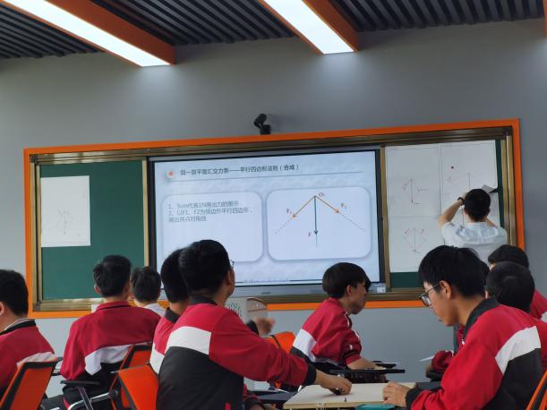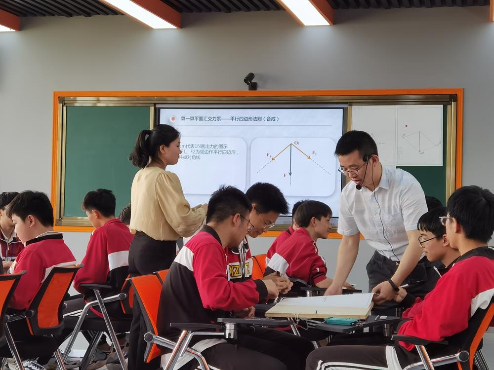 第三课堂:来自开云官方注册徐慧琴、倪彬老师的《平面汇交力系平衡问题的求解》,是一节力学+数学的文专融合课。在平面汇交力系中的平衡问题讲解的过程中,融入数学的三角函数的讲解,除此之外,加入了科学小实验环节,引导学生用弹簧秤拉橡皮筋来验证力合成所遵循的平行四边形法则,让整节课充满了乐趣。
